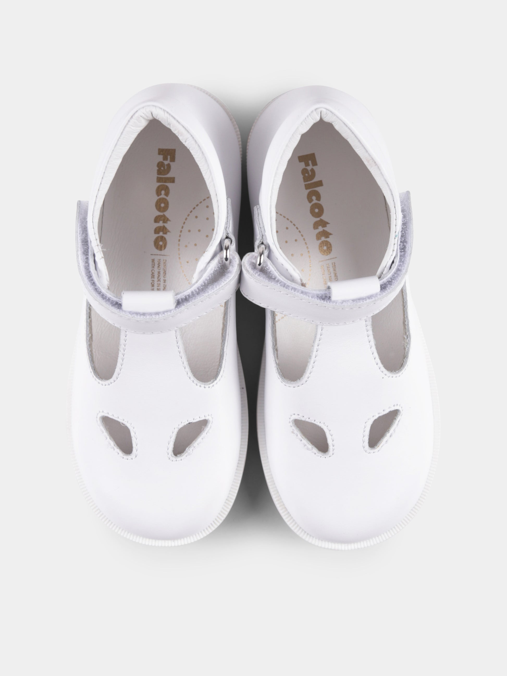 Colore: Bianco Descrizione: Occhi di bue bianchi in pelle, con suola in gomma, cinturino, chiusura a strappo e punta tonda. Sono decorati con logo laterale. Made in Italy Dettagli: 100% Pelle.