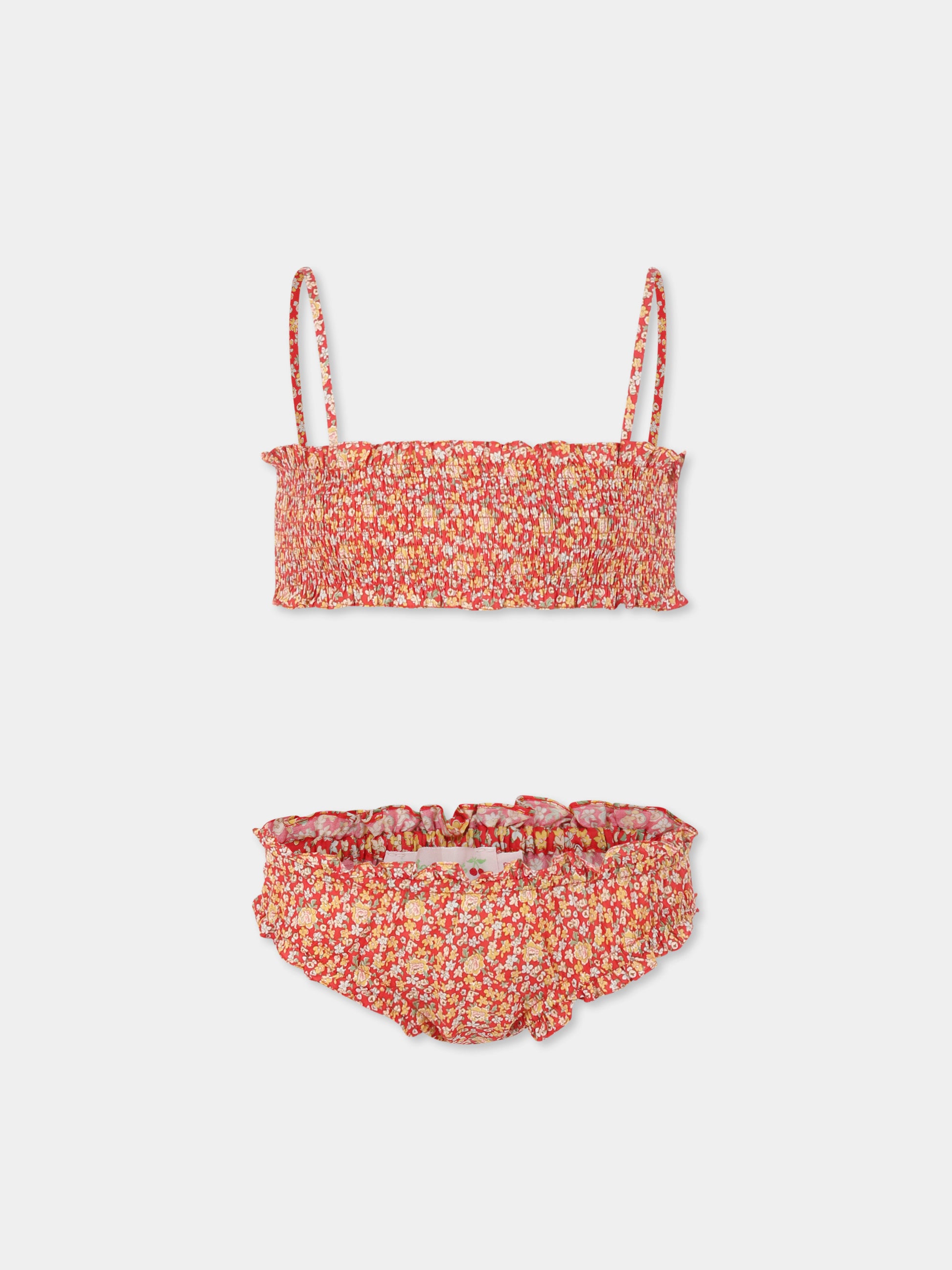 Bikini rouge pour fille avec imprimé floral