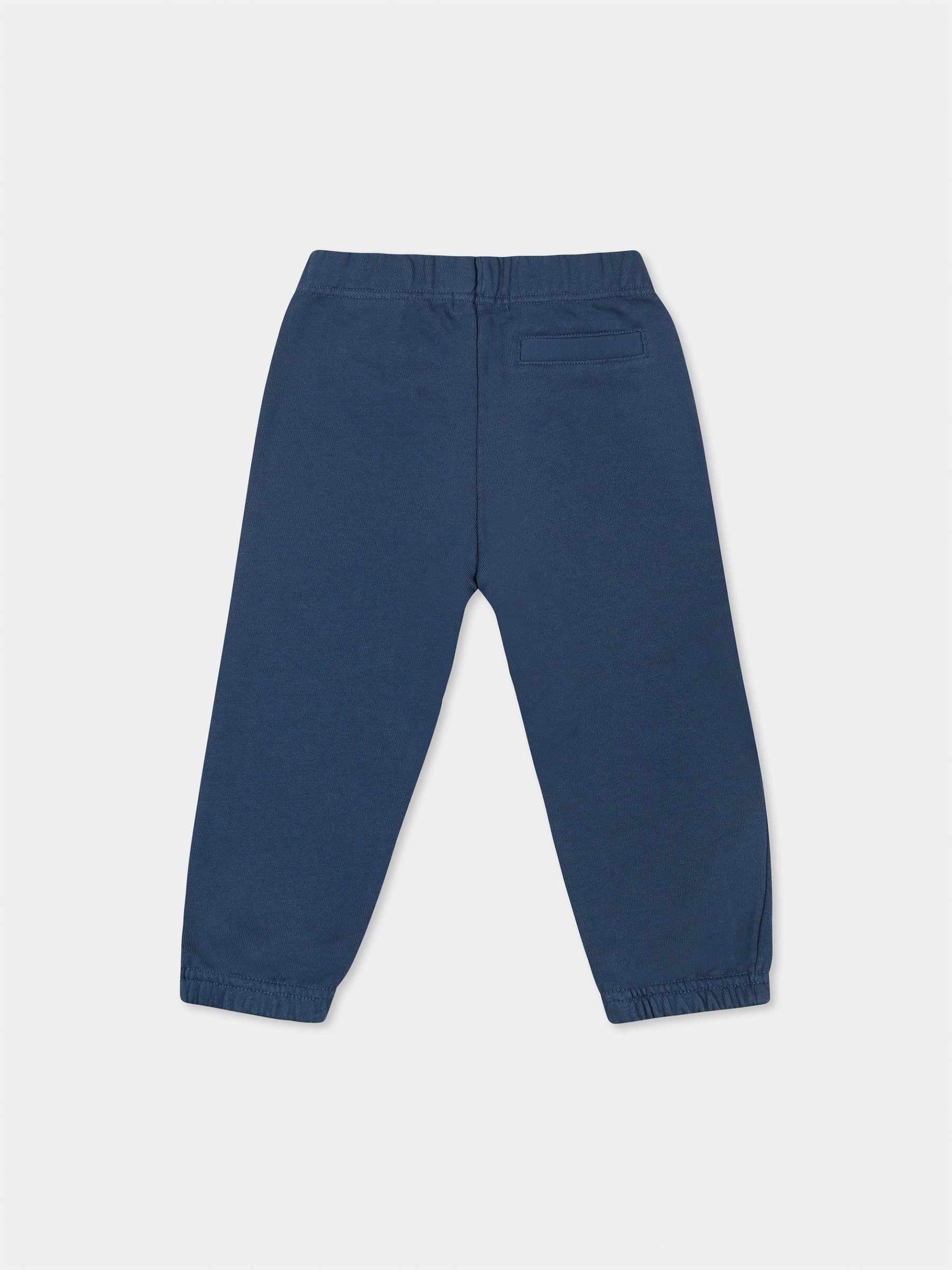 Colore: Blu Descrizione: Pantaloni blu in cotone garzato, con vita e caviglie elasticizzate. Sono decorati con logo stampato su una gamba. Dettagli: 100% Cotone. Lavare a mano.