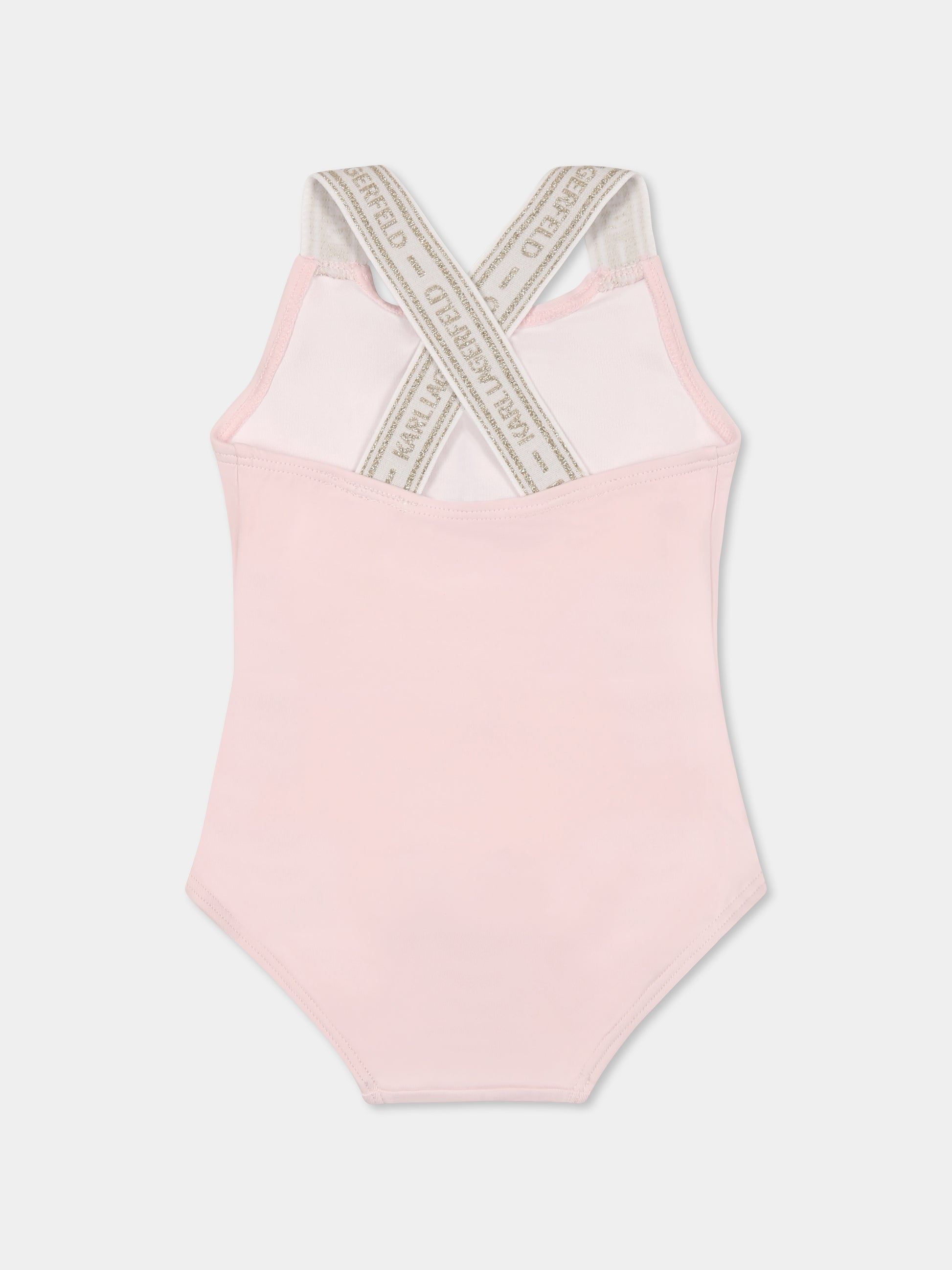 Colore: Rosa Descrizione: Costume intero rosa con spalline elasticizzate, incrociate sul retro. È decorato con Choupette sulla parte anteriore e logo in lurex sul retro. Dettagli: 85% Poliammide, 15% Elastan. Lavare a 30°C.