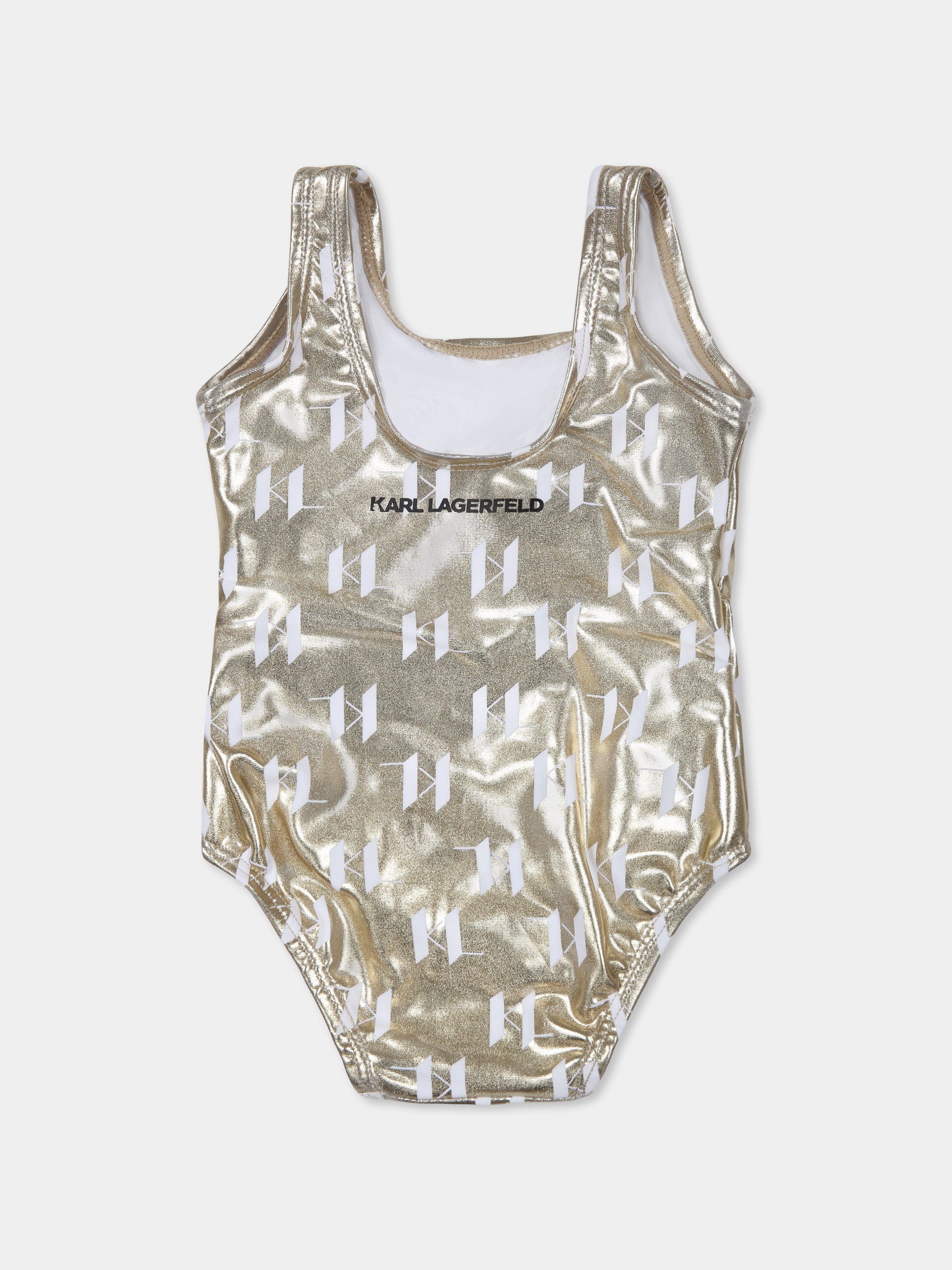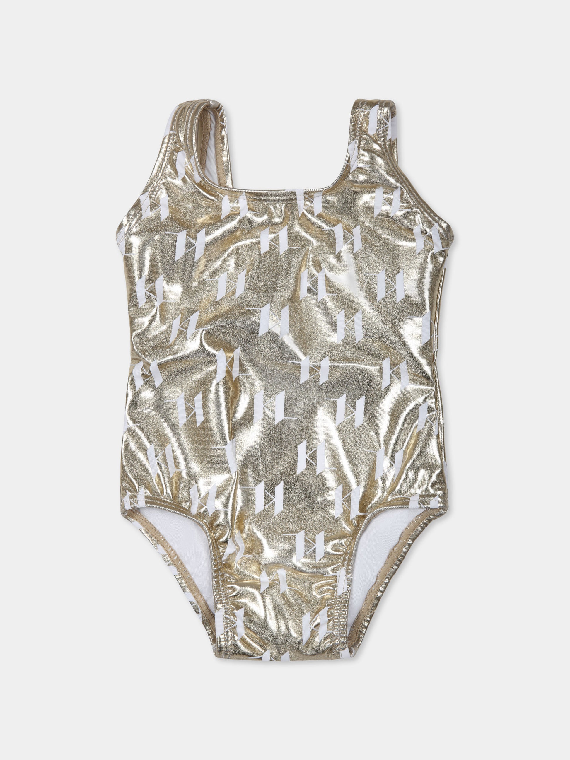 Colore: Oro Descrizione: Costume intero oro, con spalline; é decorato con logo bianco all-over e logo nero sul retro. Dettagli: 85% Poliestere, 15% Elastan. Lavare a 30°C.