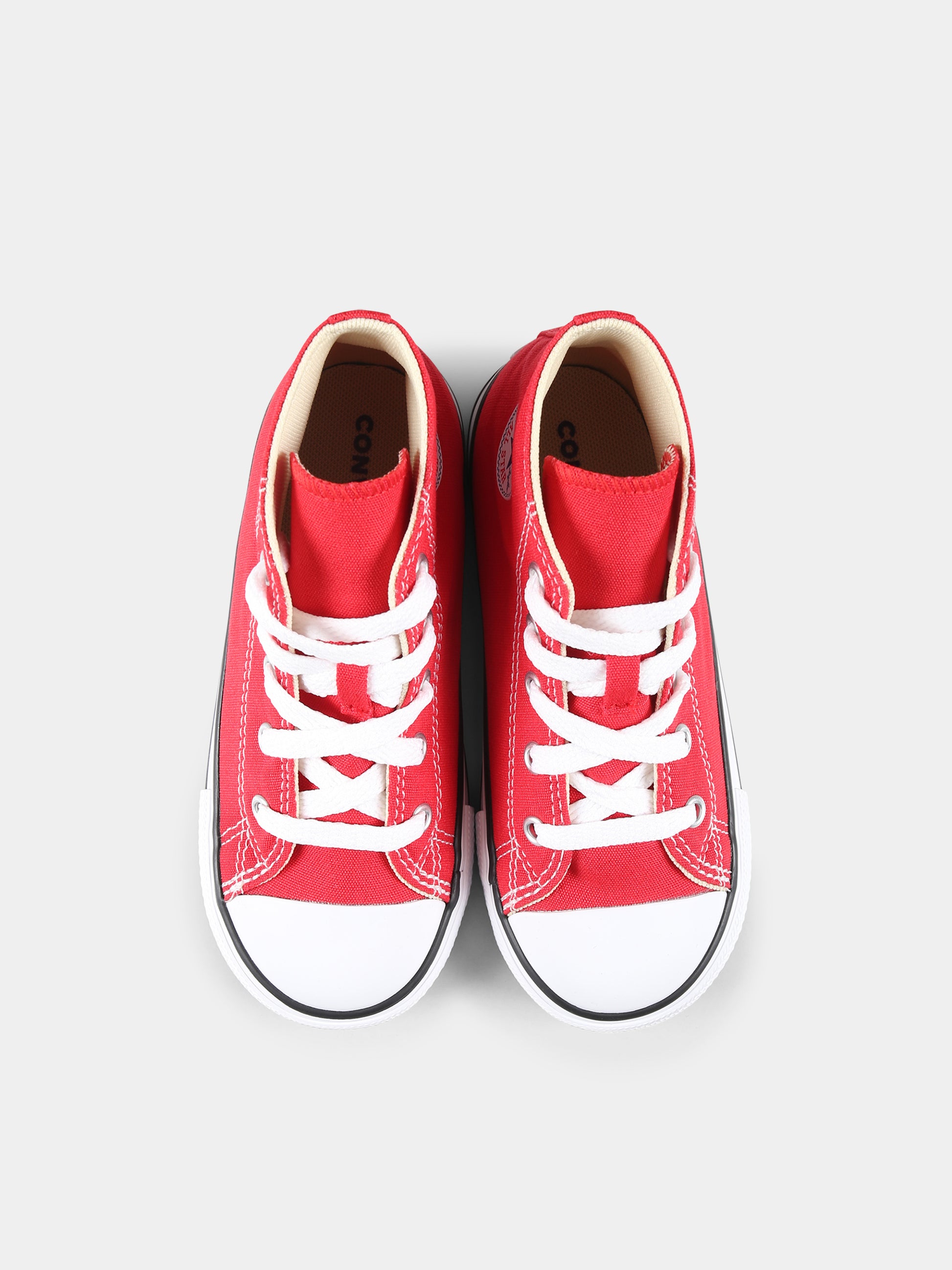 Colore: Rosso Descrizione: Sneakers rosse in tela, con suola in gomma, lacci e punta tonda; ammortizzazione OrthoLite per un comfort ottimale. Sono decorate con iconica patch Chuck Taylor su un lato. Dettagli: 100% Tessile.