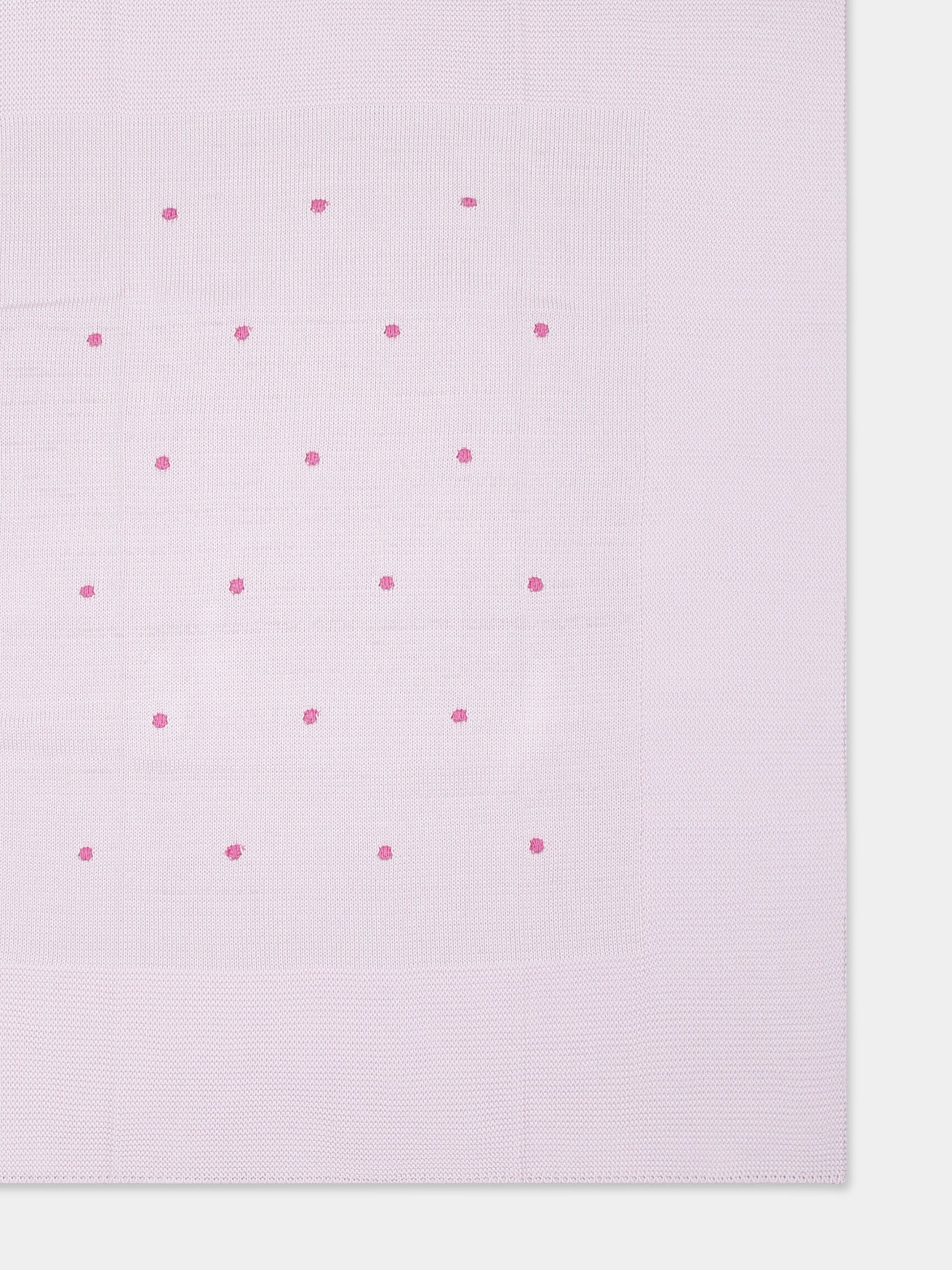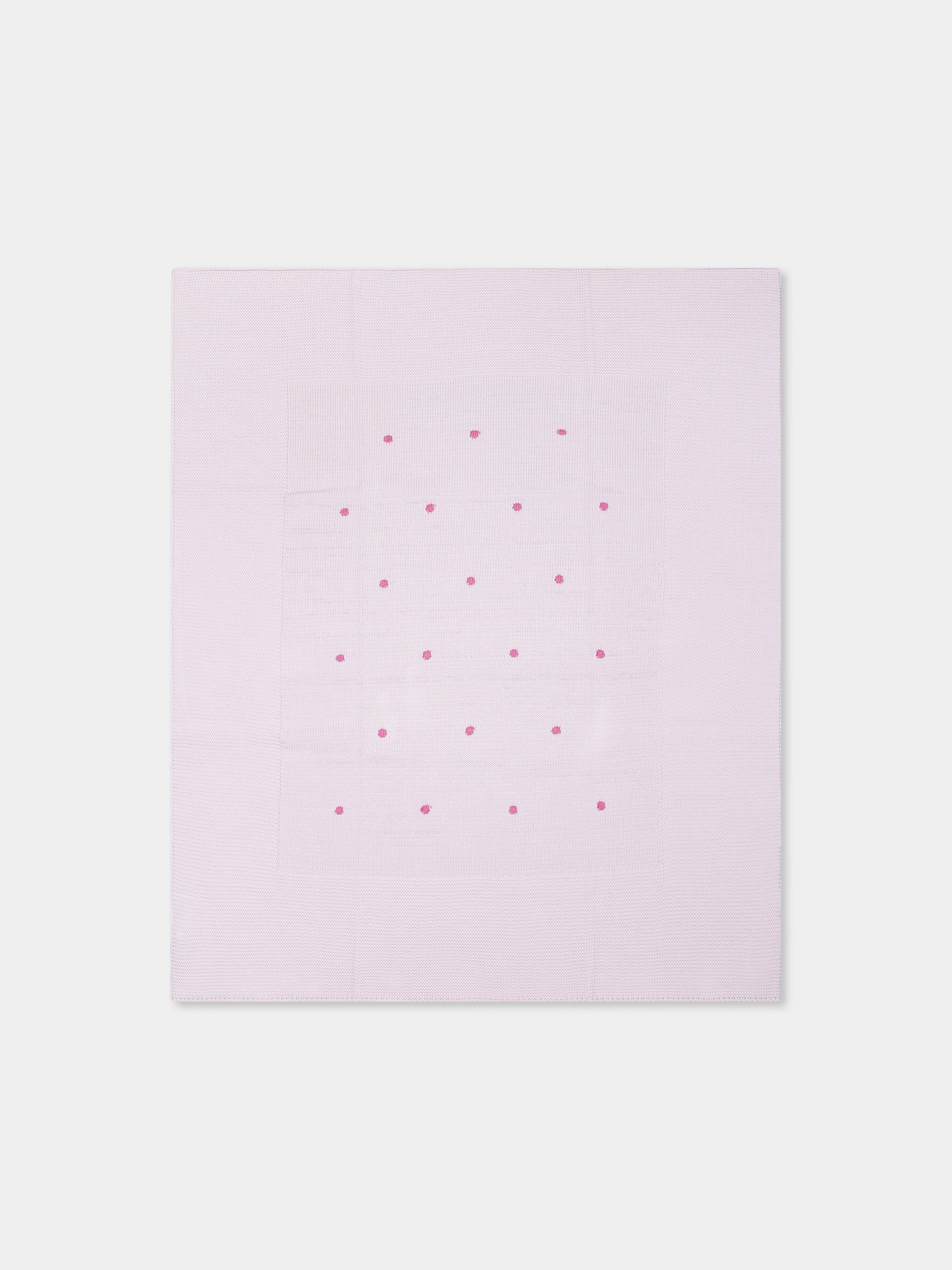 Colore: Viola Descrizione: Coperta viola in filo di cotone, decorata con pois ricamati sulla parte anteriore. Dimensioni (L x A): 68cm x78,5cm Made in Italy Dettagli: 100% Cotone. Lavare a mano.